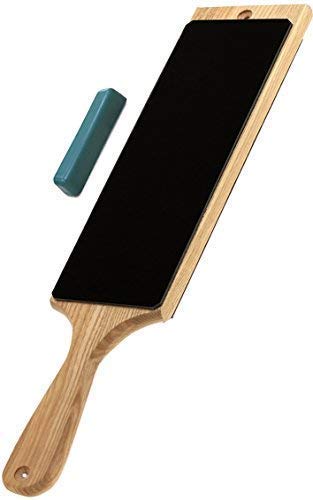 - ⭐️ LEATHER STROP + POLISHING COMPOUND is versatile professional knives sharpening and honing system. Use strop with polishing compound to get the sharpest edge possible. The paddle strop isn't new to sharpening but it is still confusing to some. Like a razor strop, the leather strops for sharpening knives are used to put a very fine edge on your blade. Barbers have been using leather strops for decades to keep an extremely sharp edge on their straight razors.